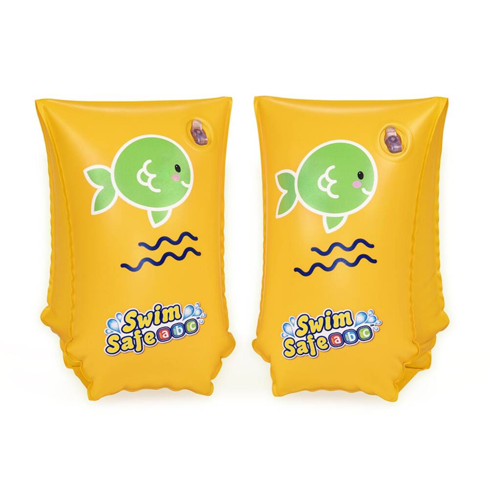 ŞİŞİRİN VE TAKIN 1. Kollukları ağzınızla şişirin. Emniyet valfini açın ve önce bir hava bölmesini şişirin. Hava bölmelerini, kırışıklıkların büyük kısmı yok oluncaya kadar şişirin; dokunulduğunda sert DEĞİL ancak sağlam olmalıdır. Bittiğinde valfi kapatın. NOT: Asla gereğinden fazla veya basınçlı hava kullanarak şişirmeyin. 2. Kollukları çocuğun üst kollarına geçirin ve diğer hava bölmesini şişirin. 3. Kollukların doğru şekilde oturduğundan ve kolu sıkıca sardığından emin olun. Gereğinden fazla şişirmeyin, aksi takdirde çocuğun kan dolaşımı kesilir. SÖNDÜRÜN VE ÇIKARIN 1. Emniyet valfini, havayı boşaltmak için kıstırarak çekip çıkarın. 2. Kollukları çocuğun kolundan çıkarın. 1. Depolamak üzere kaldırmadan önce suyla durulayın ve havayla iyice kurutun. Normal oda koşullarında ve güneş ışığından uzakta kuru bir yere yerleştirin. Ürün, depolama sırasında parçalanmaması ya da yırtılmaması için diğer ağır nesnelerin altına yerleştirilmemelidir. 2. Dikişlerde ve folyoda düzenli olarak yırtık ve delik kontrolü yapın.
