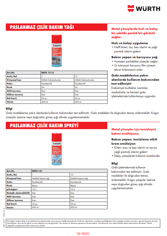 Gıda ile doğrudan temasından kaçının. Eloksal kaplama alüminyum, galvanizli ya da boyalı yüzeyler üzerinde kullanmayın.