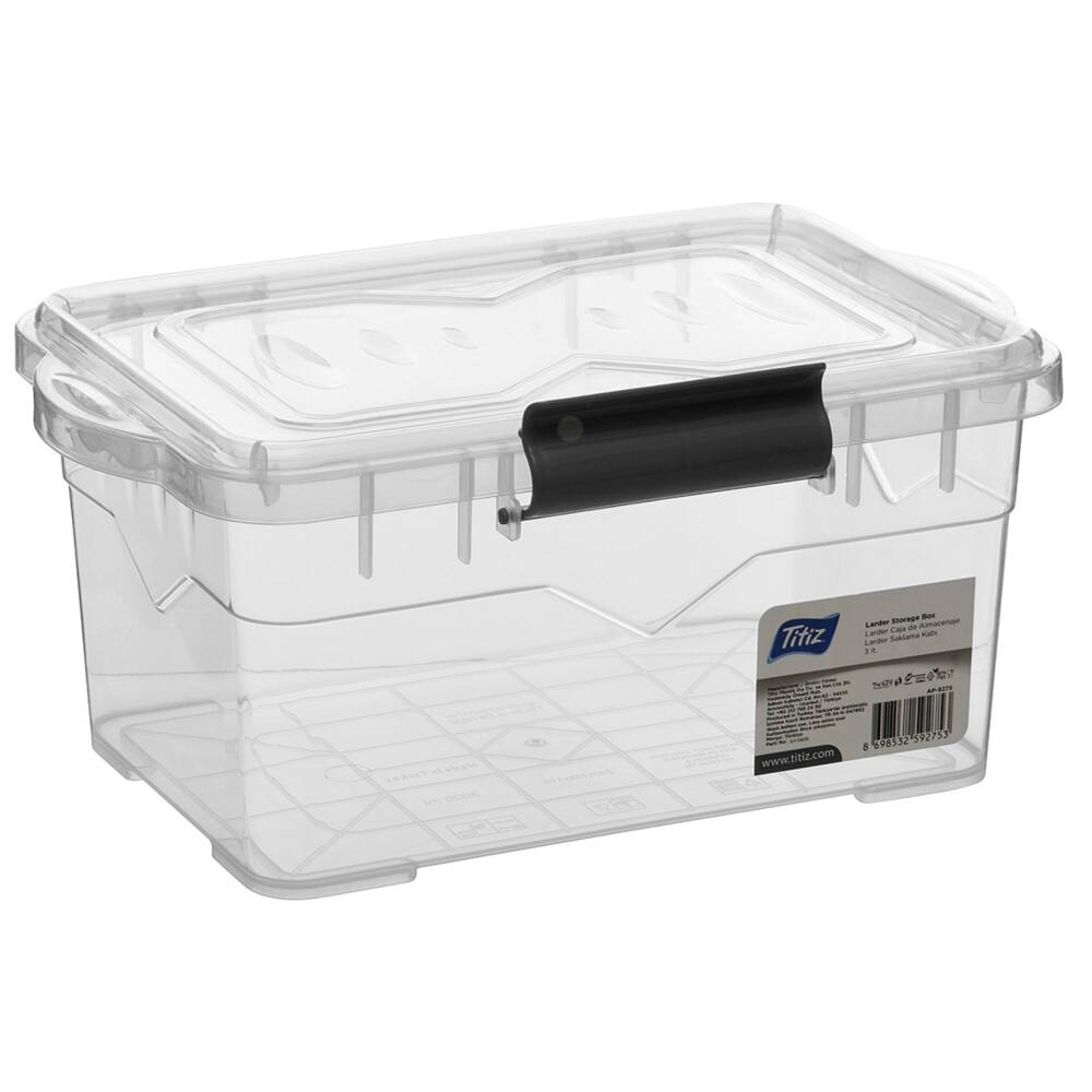 Titiz Larder saklama kabı; geniş ölçüleri ve dayanıklılığı ile yemeklerinizi yanınızda taşımanızı yardımcı oluyor. Sağlam malzeme kullanımı sayesinde uzun ömürlü bir deneyim sunan Titiz plastik saklama kabı, kilitli kapağı ile yiyeceklerin tazeliğini korumasına katkı sağlıyor. Birinci sınıf malzeme kullanımı sayesinde dayanıklı bir yapıda bulunan saklama kabı bu sayede mikrodalgada kullanıma uygun hâle geliyor Şık ve estetik tasarımının yanı sıra ergonomik yapısıyla da ön plana çıkan saklama kabı, elde ve bulaşık makinesinde kolayca temizlenerek hijyenik bir kullanım imkânı sunuyor. Kapak kısmında yer alan delikli bölgeler yiyeceklerin hava almasını sağlarken, yan taraflarda bulunan tutma bölmeleri kolay taşıma olanağı sunuyor. Titiz Larder saklama kabı; ekmek, kuruyemiş, yemek ve daha birçok farklı malzemeyi güvenli ve dayanıklı bir şekilde saklamanıza yardım ediyor.